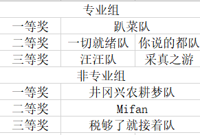 经过激烈角逐与评委的综合评审,赛事最终评选出获奖名单。其中,非专业组与专业组分别揭晓:非专业组一等奖、二等奖、三等奖各一名;专业组一等奖一名、二等奖两名、三等奖两名。