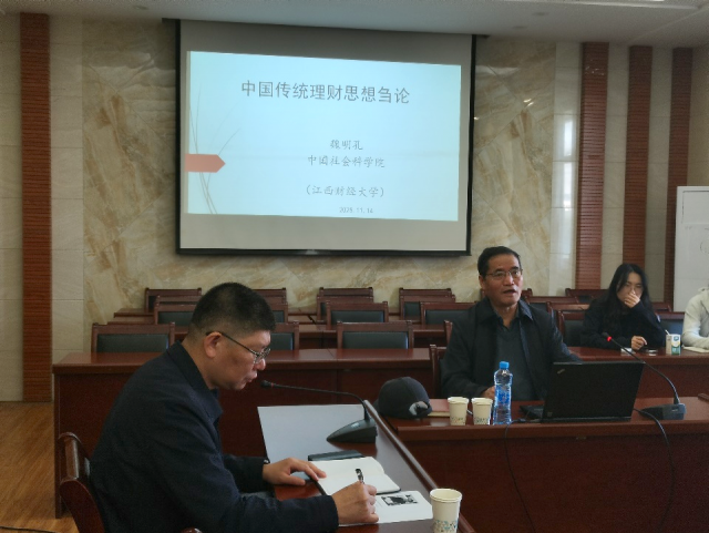 11月14日上午,应天美传媒 邀请,中国社会科学院“登峰战略”资深学科带头人、经济研究所二级研究员、中国社会科学院大学特聘教授魏明孔莅临天美传媒 ,以“中国传统理财思想刍论”为题开展学术讲座。讲座由学院院长张利国教授主持。