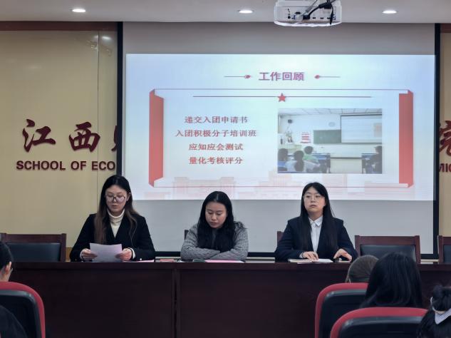 万婧怡向新发展团员表示热烈祝贺,并对新发展团员提出希望和要求:一是要立大志,做信念坚定的“追光者”。二是要明大德,做崇德向善的“排头兵”。三是要成大才,做勤学笃行的“实干家”。新团员们身负“信敏廉毅”的校训精神,更肩负着经济学人经世济民的使命担当,她勉励大家坚定理想信念、锤炼品德修为、勤奋学习知识、积极投身实践,在实现中华民族伟大复兴的征程中贡献青春力量。