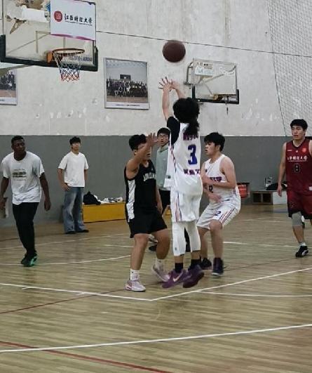 白队11号球员迎着灰队防守球员的封盖强行出手,篮球擦板直奔篮筐;灰队19号抢下篮板迅速反击,白队32号横向移动死死贴防!比分胶着的赛场,每一次卡位、每一次封盖都拼至全力!
