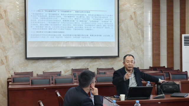 第二场讲座周文教授围绕“民营经济高质量发展的若干理论问题”,深入剖析了当前推动民营经济高质量发展必须厘清的若干重大理论命题。首先从社会主义发展阶段理论出发,定位了民营经济存在的历史方位,指出其在社会主义初级阶段乃至更长时期内的历史必然性与现实重要性,是中国特色社会主义市场经济体系不可或缺的内在组成部分。随后,基于马克思主义劳动价值论,对民营经济中的资本与劳动关系进行了再认识,探讨了在社会主义市场经济条件下,如何更全面地理解资本的二重性作用,以及如何构建更和谐的劳资关系以促进价值创造与共享。最后,深入阐述了社会主义经济多元论,对民营经济的性质、地位与作用进行了系统性辨析,强调公有制经济与非公有制经济并非简单对立,而是可以相互促进、共同发展,统一于社会主义现代化建设的伟大进程之中,需要从理论层面彻底厘清其与社会主义基本经济制度的内在一致性。整场讲座逻辑严密、视野宏阔,为深刻理解和坚定支持民营经济发展壮大提供了富有启发的理论框架与学理支撑。
