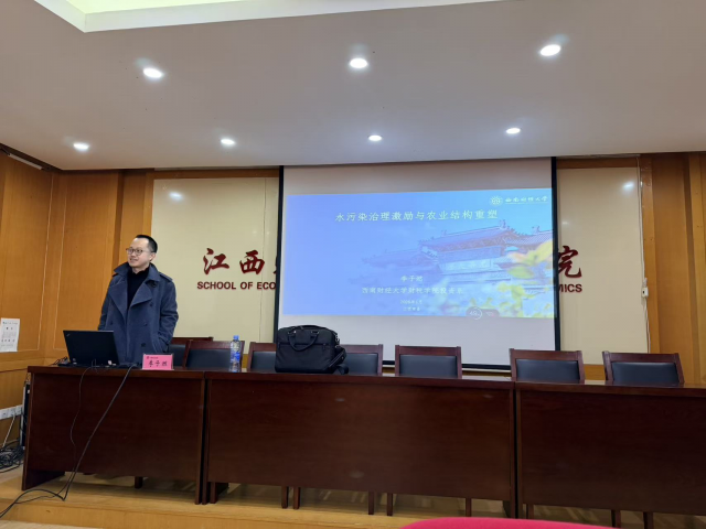 李子燃副教授围绕“水污染治理激励与农业结构重塑”作专题报告,系统梳理了我国水环境规制的制度逻辑与实施路径,指出水污染治理在我国呈现出“一个控制、两个标准”的核心框架:通过控制全国排放总量、同步强化污染排放标准与水体达标考核来推动地方落实,并依托国控地表水自动监测站实现跨层级、可核验的监管闭环。他进一步基于监测站上游—下游的准实验思路,展示水质考核强化后上游县域农业活动与要素投入出现收缩、人口流动增强及主粮种植面积下降等证据;同时以2014年“水十条”推动的畜禽禁养区为例,指出政策压力可能倒逼清洁生产:禁养区县域生猪存栏不降反升,而下游氨氮指标显著改善。报告强调,应以制度约束推动农业绿色转型,在稳产与减污之间实现更高水平的协同。