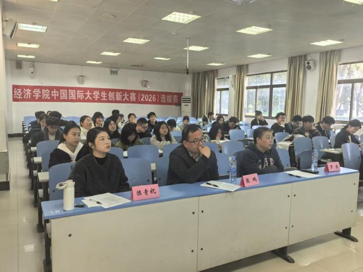 为营造浓厚的创新创业氛围,激发学生创新实践活力,天美传媒 于3月11日在蛟桥园第五教学楼举办“中国国际大学生创新大赛(2026)”院级选拔赛。邀请罗东老师、张鹏老师、陈青祝老师担任评委,参赛团队齐聚一堂展示各自的创新成果。